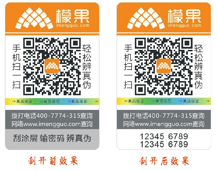 二維碼防偽標簽是以二維碼為信息載體,通過正品防偽的防偽系統賦予每一個產品一個唯一的防偽編碼并標識于二維碼標簽上,再將標簽貼到產品或包裝上,如同每一個人都有唯一的身份證號碼一樣,消費者購買后掃一掃產品上的二維碼即可驗證產品真偽。